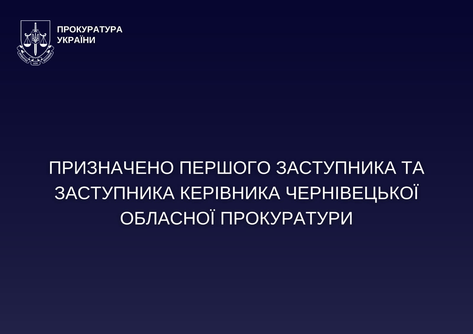 Призначено першого заступника та заступника керівника Чернівецької обласної прокуратури