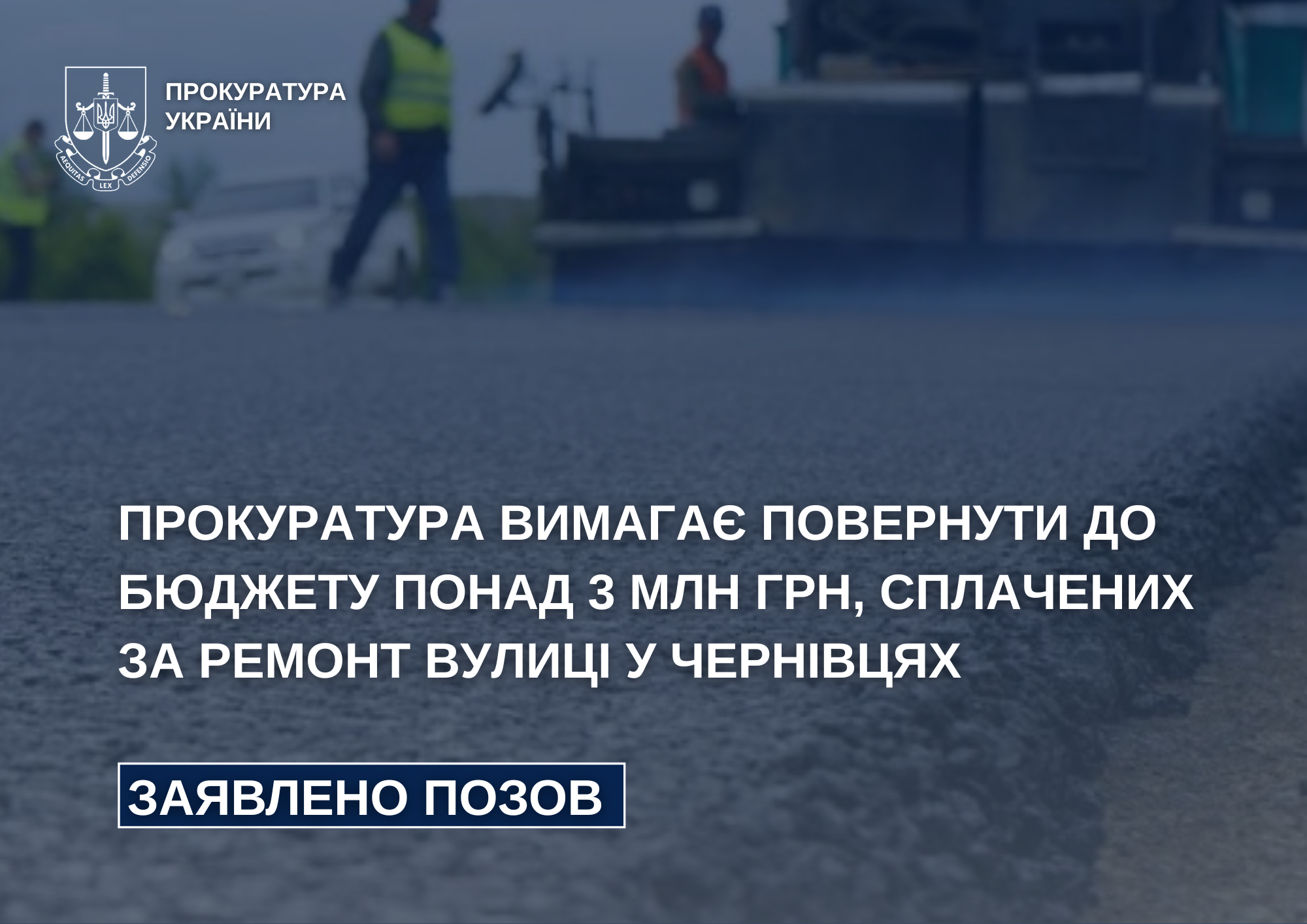 Прокуратура вимагає повернути до бюджету понад 3 млн грн, сплачених за ремонт вулиці у Чернівцях