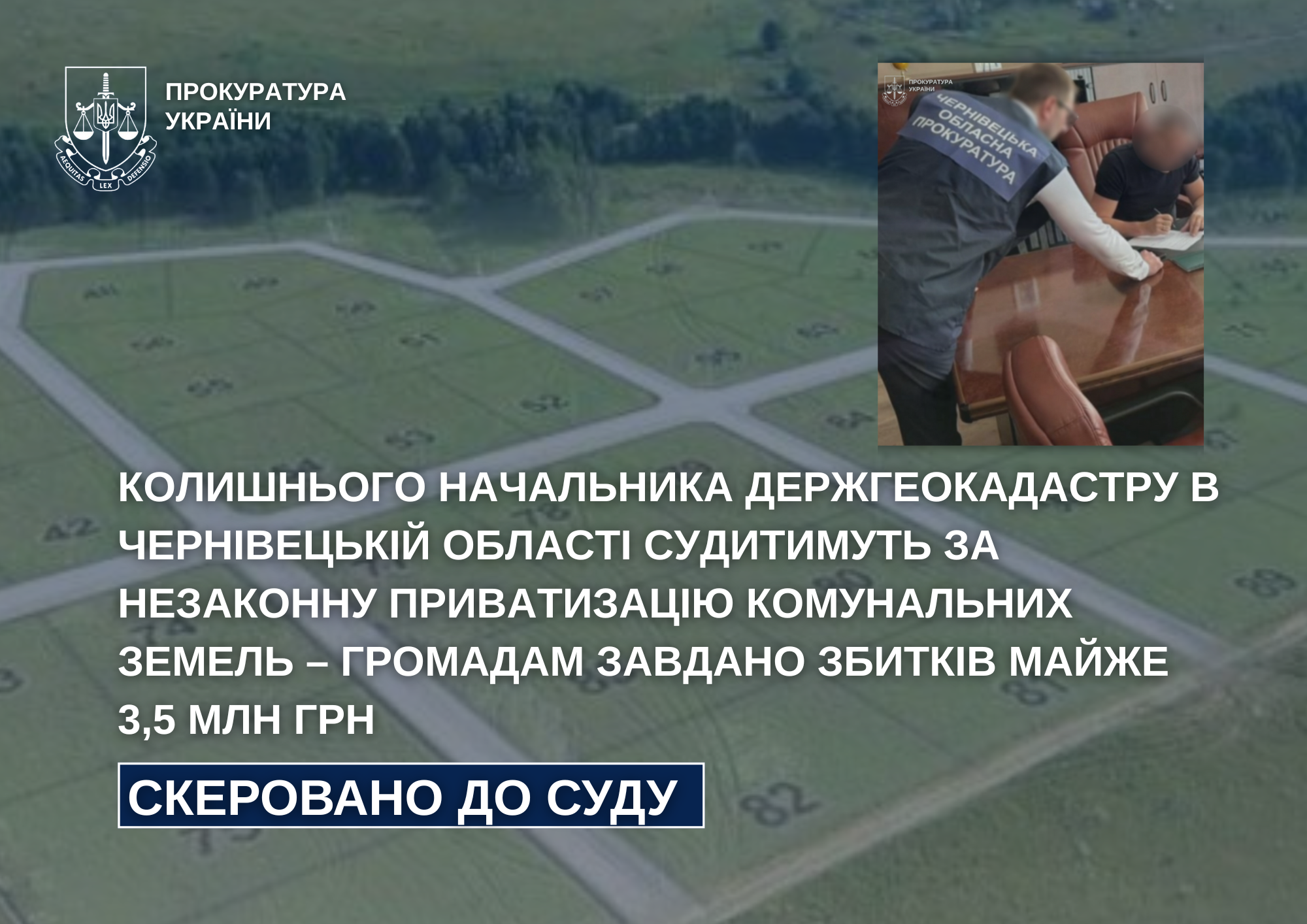 Колишнього начальника Держгеокадастру Чернівецької області судитимуть за незаконну приватизацію комунальних земель – громадам завдано збитків майже 3,5 млн грн